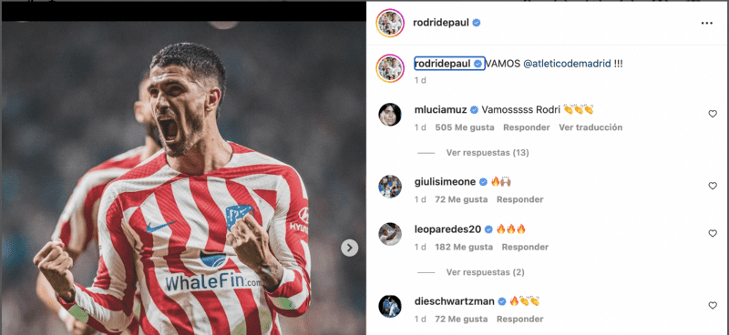 Se trata de Leandro Paredes. El actual elemento de la Juventus es muy activo en redes y no desaprovechó la oportunidad para comentar el posteo que hizo De Paul, quien ya lleva cinco goles desde que llegó al Atlético de Madrid en 2021 (cuatro en La Liga y uno en Champions League).
