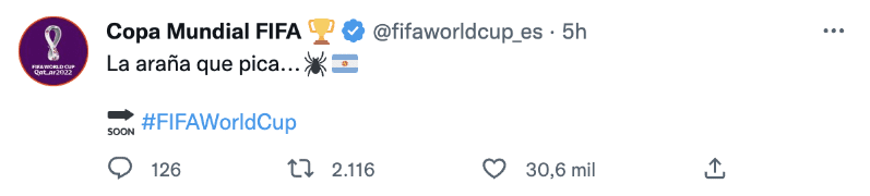 Durante su actuación ante Emiratos, la cuenta oficial de la Copa Mundial FIFA estuvo pendiente del desarrollo del cotejo y se rindió a los pies de la ‘Araña’. Tras su tanto en Abu Dhabi, destacó en Twitter al autor de siete anotaciones en la presente temporada con la camiseta del Manchester City.