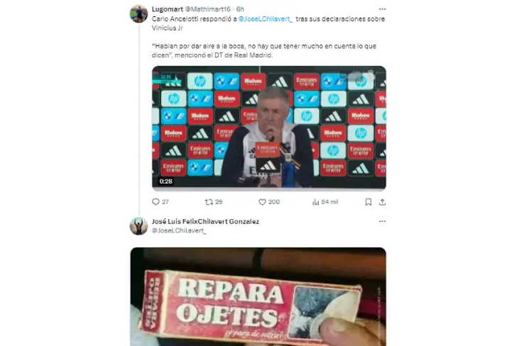 Y completó: "Cuando la policía brasileña mató a palos a los hinchas argentinos y de Boca, ¿dónde estaba Vinicius que es un ejemplo de los líderes de Brasil? Le pegaron a los chicos, mujeres y veteranos. Cuando te pegan ellos está todo bien, pero después vos les faltás el respeto y empiezan a llorar”. Ahora bien, este sábado le consultaron a Carlo Ancelotti por estos dichos, y el DT expresó: "No tiene sentido comentar eso, hablan tanto por dar aire a la boca”.