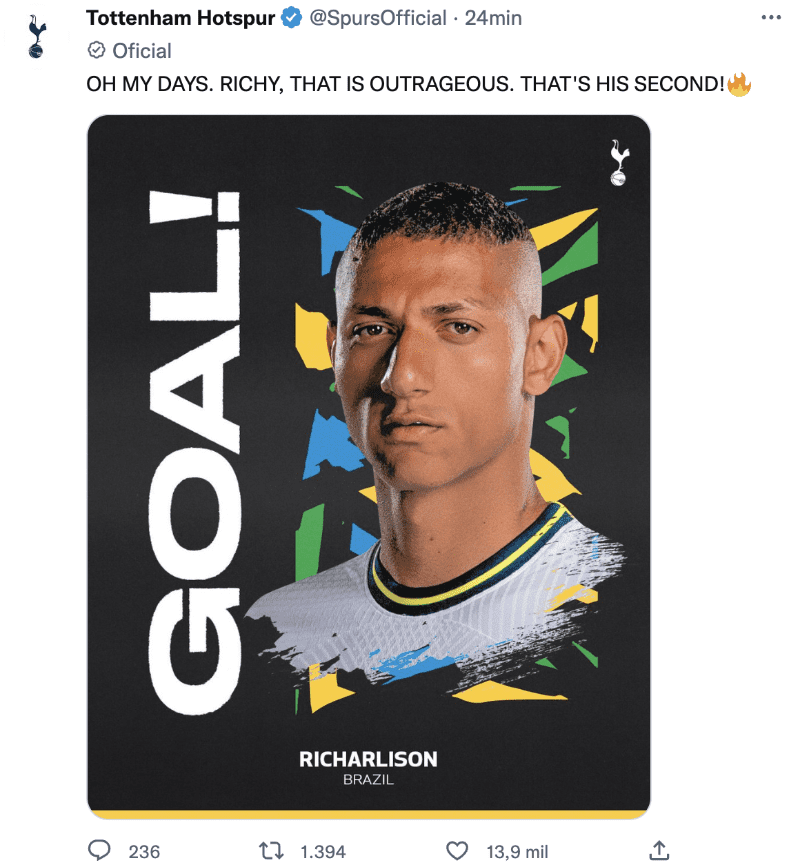 Los Spurs estuvieron atentos al desempeño del destacado ofensivo y a través de Twitter reaccionar al gran desempeño del exjugador del Everton. El Tottenham se deshizo en elogios hacia el polémico elemento brasileño, quien menospreció a Argentina en más de una ocasión.