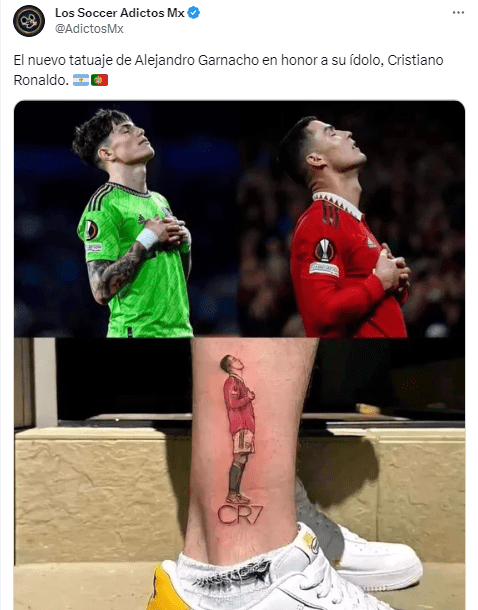 La imagen en cuestión se dio en el festejo del gol de Messi, ya que el capitán fue a celebrar con los suplentes y Garnacho fue el primero en recibirlo. Ahora bien, luego de haber hecho ese posteo, Alejandro volvió a evidenciar su devoción por Cristiano y se hizo ¡un tatuaje de él!