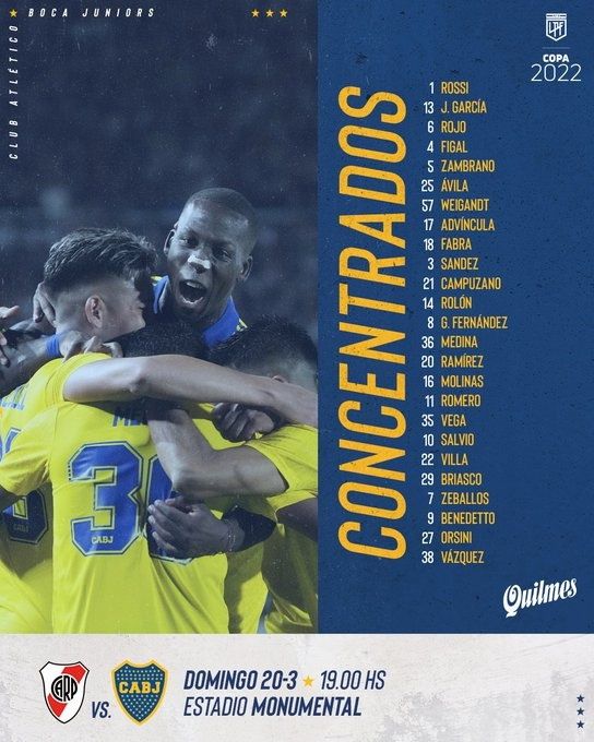 River y Boca confirmaron a todos los futbolistas que estará en el Monumental el próximo domingo desde las 19 en una nueva edición del Superclásico del fútbol Argentino.