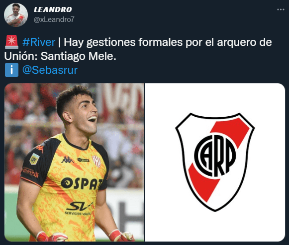 Hace un tiempo, el propio Armani reveló que quiere retirarse en Atlético Nacional. Es por eso que, teniendo en cuenta su edad, es probable que se marche del club pronto. En ese marco, los dirigentes del club ya han apuntado a un posible reemplazante internacional, el cual se desempeña en el fútbol argentino. Se trata de Santiago Mele, arquero de Unión.